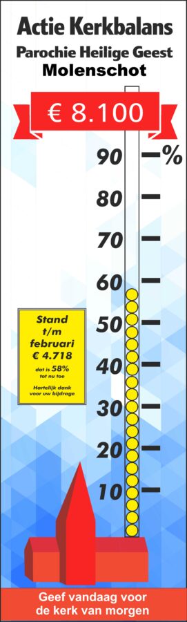 € 81.500 is hiermee nog lang niet in zicht, maar het is wel een mooi begin. Wij danken u heel hartelijk voor uw bijdrage. In de kerken van Molenschot en Rijen houden we de stand van zaken bij met een levensgrote thermometer.