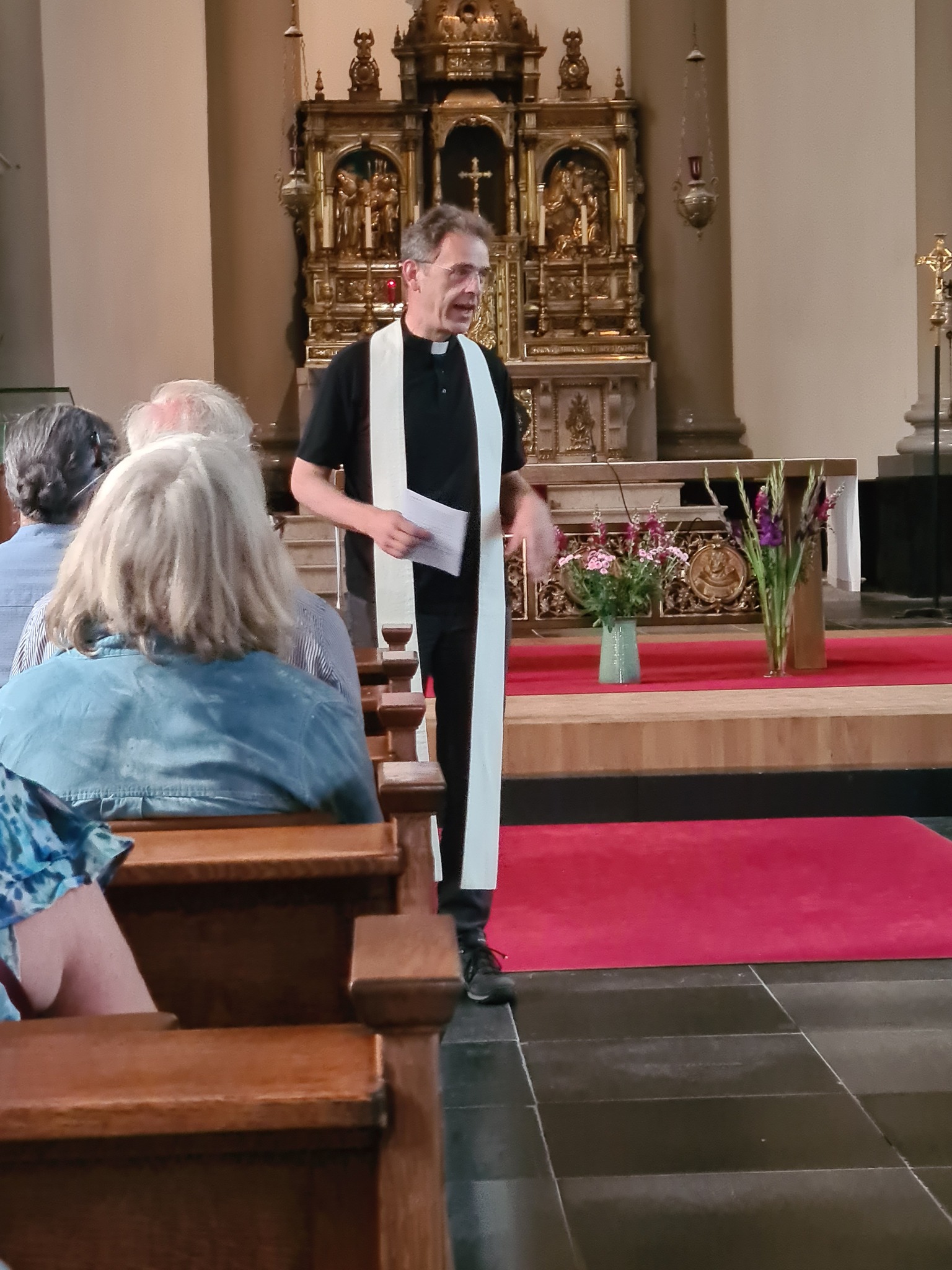 Al die pelgrims verzamelden zich op zaterdag 26 juli om 12.30 uur in de Sint Annakerk in Molenschot voor de pontificale hoogmis met vicaris Norbert Schnell als hoofdcelebrant. De speciale sfeer die een pelgrimstocht heeft, was in de goedgevulde kerk duidelijk voelbaar in het gezamenlijk gebed en de samenzang.
