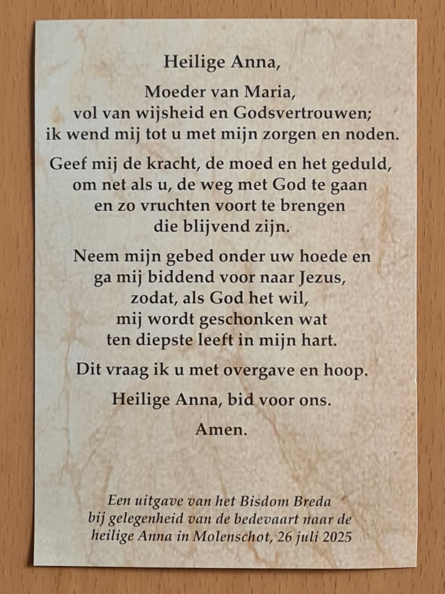 In het Jubeljaar 2025, het jaar van de pelgrims van hoop, is er extra aandacht geweest voor de bedevaart naar heilige Anna in Molenschot. Binnen het bisdom Breda in onze zone De Wijngaard, de belangrijkste bedevaartsplaats.