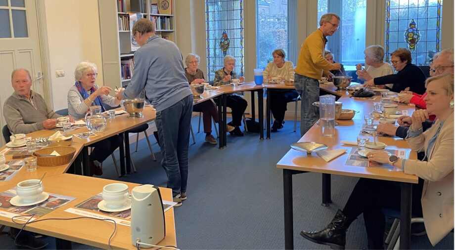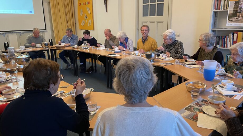 Mevrouw Angelique Steysel, medewerkster van Vastenactie, kwam helemaal uit Leiden om ons tijdens deze bijeenkomst bij te praten over het thema en het project van de Vastenactie van dit jaar: “Geven jullie hen maar te eten” in Bolivia. Voorafgaand aan de maaltijd was er een korte bezinning, aan de hand van de werken van barmhartigheid en een gebed.