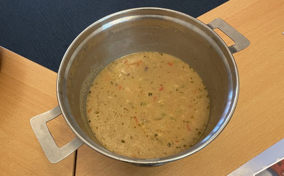 Het menu bestond uit een maaltijdsoep, Sopa de Maní, oftewel pindasoep. Deze wordt in Bolivia bijna dagelijks gegeten.