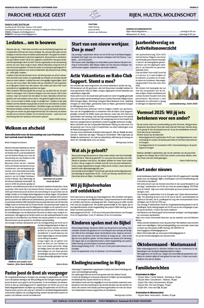 Klik hier onder voor de parochiebladen in het weekblad Gilze en Rijen